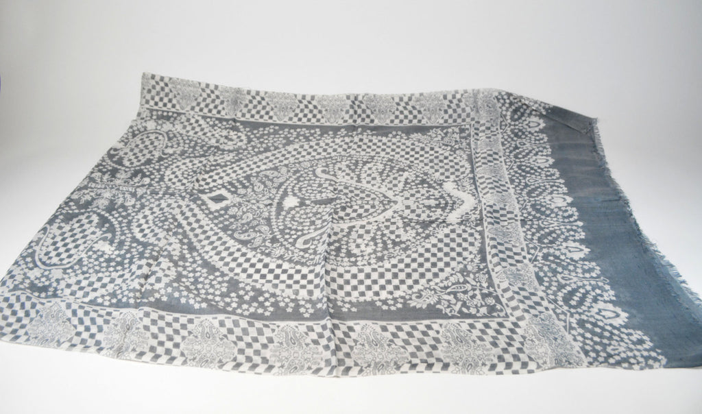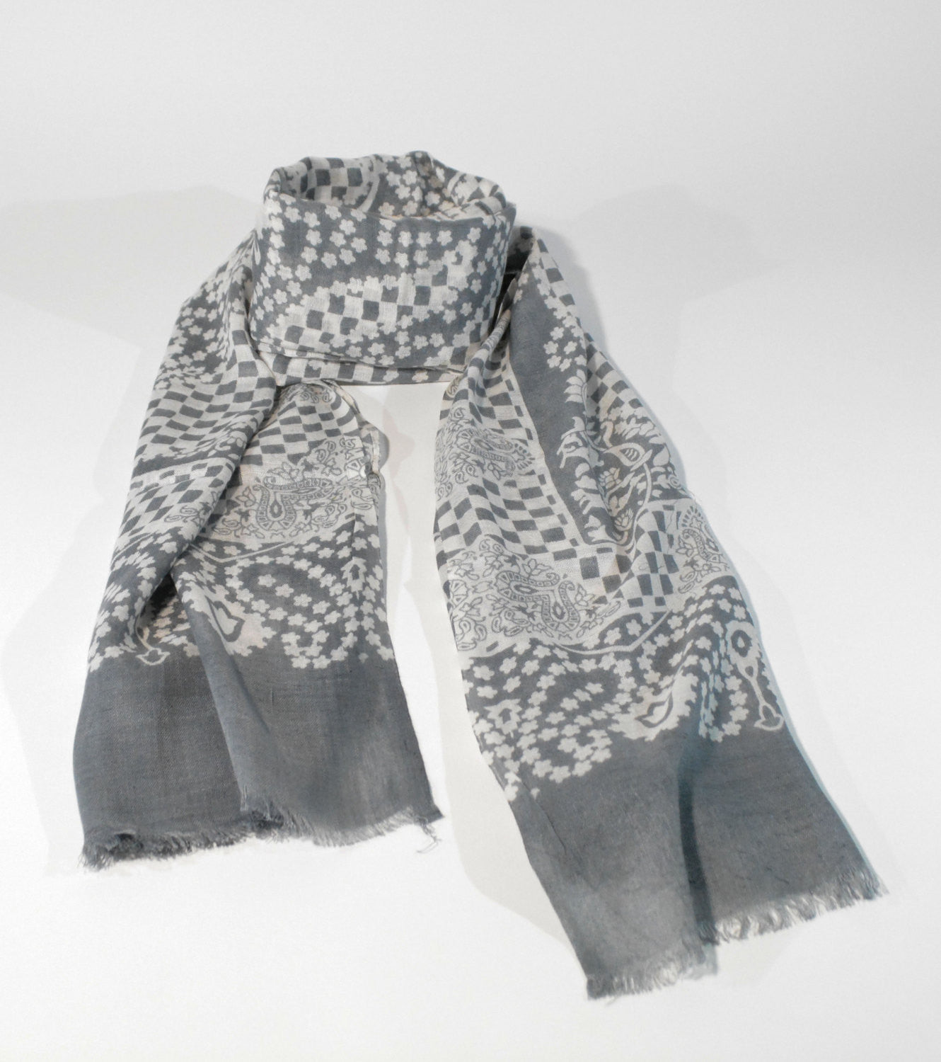 Stay stylish with this gray and white Viscose scarf. Its versatile print is suitable for men and women, making it a great addition to any outfit for spring, summer or the office.