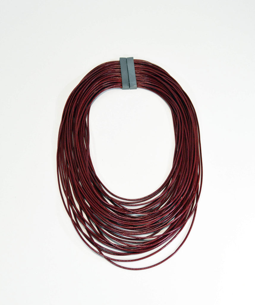This is a 36 strand layered cotton cord necklace for women. It fastens with an elegant and solid magnetic clasp. The smallest strands measures 15.5", and the longest measures 18.5". A must have accessory to jazz up your wardrobe.