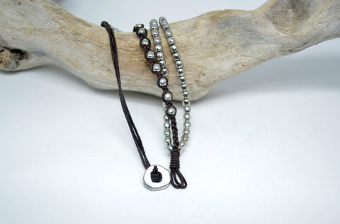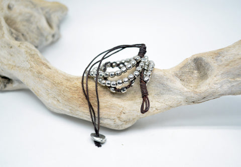 This men's leather bracelet made with silver plated beads and a mobile button to adjust its lenght. It can be used as an anklet too. Suitable for both men and women.